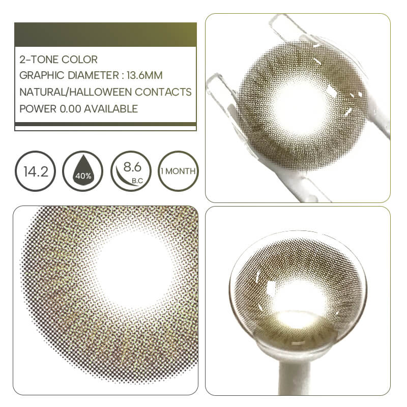 Achieve perfect eye enhancement with these brown and green colored contacts featuring a unique 2-tone design. The rich brown base blends seamlessly with natural green speckles, creating dimensional depth that mimics real iris patterns for an authentic yet enhanced look.