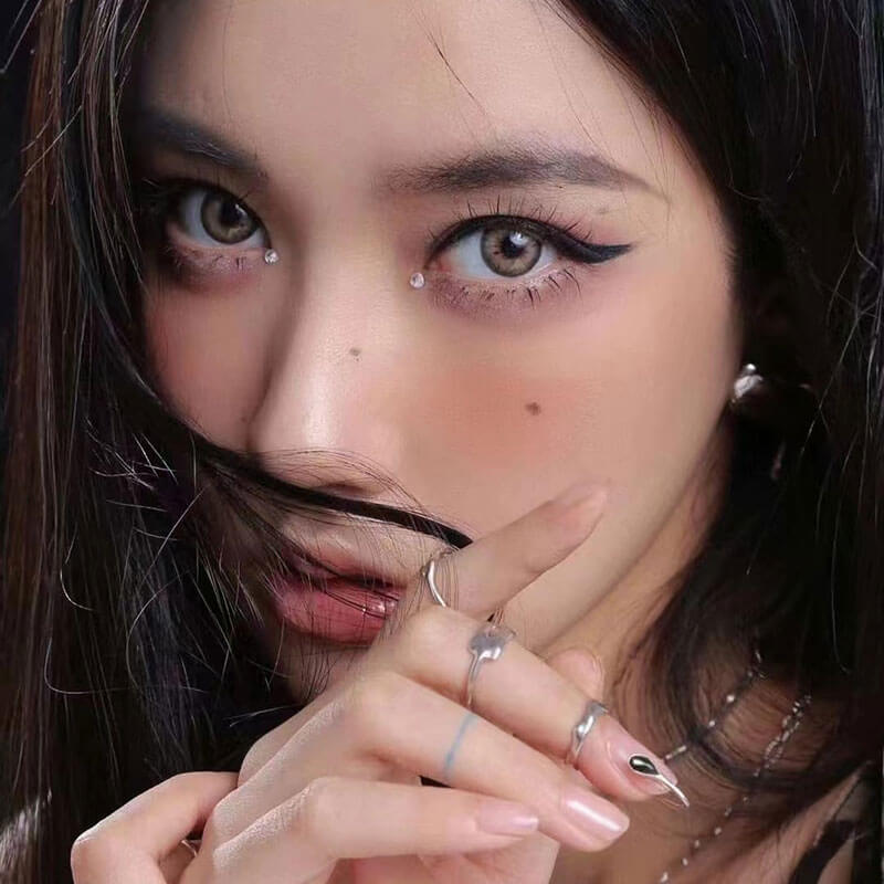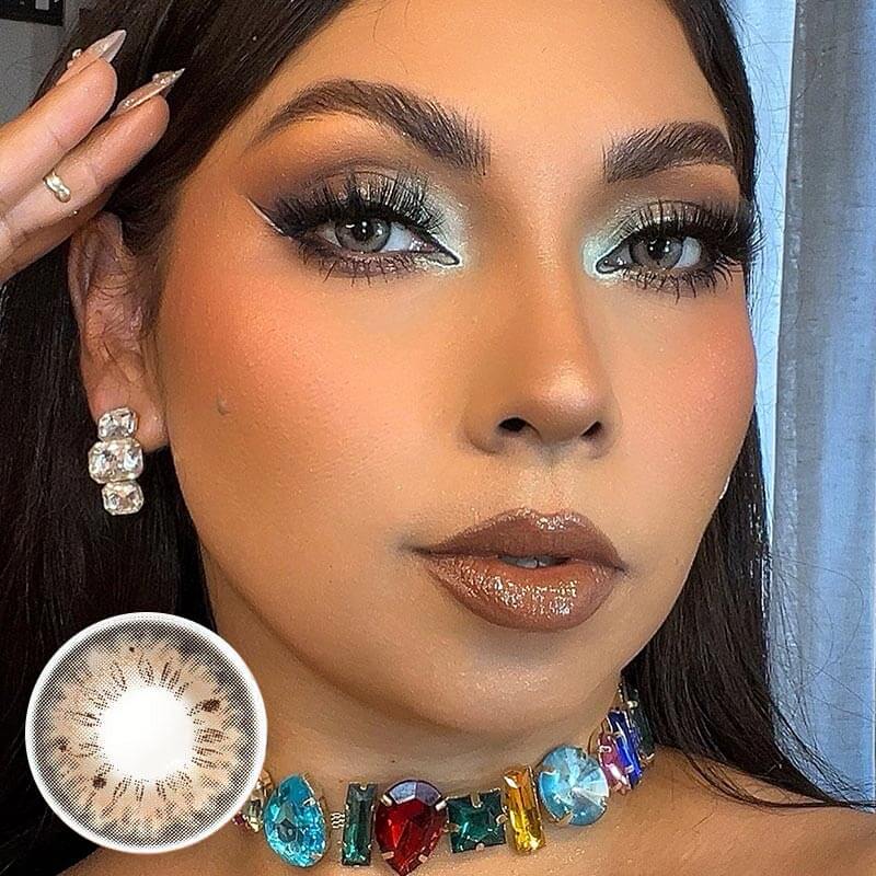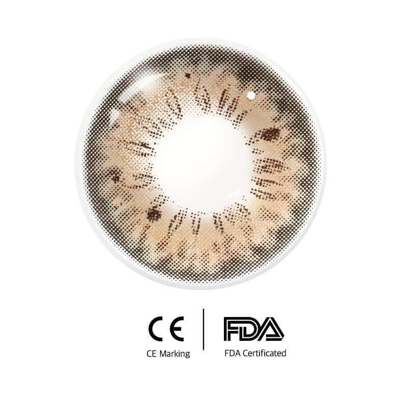 Iffy brown colored contacts offer a natural look, featuring irregular dots that mimic real eyes. The subtle brown edge brightens your eyes and easily adapts to your different eye looks!