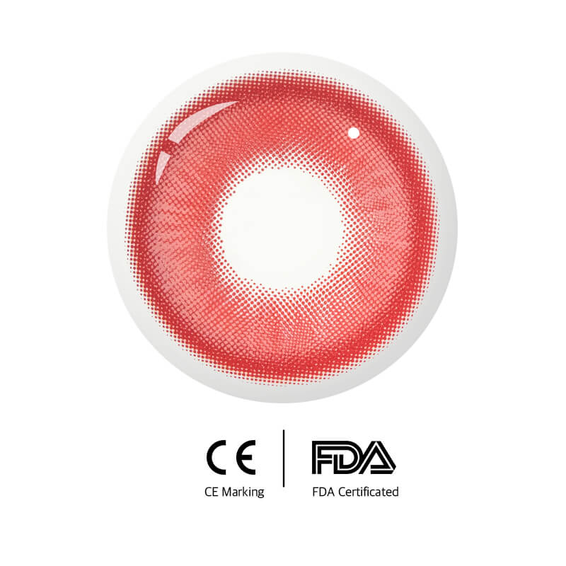 Inspired by the sapphire,these red contact lenses feature an intricate blend of aquatic and amethyst tones, delicately highlighted with silvery accents for a multidimensional yet naturally enhancing effect.