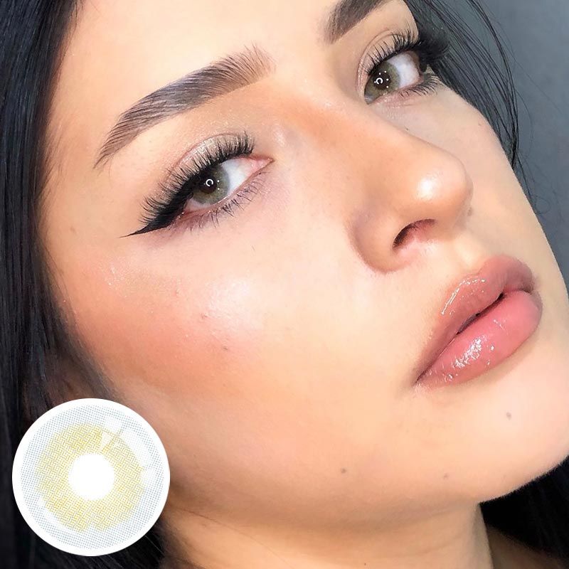 Polar Light Yellow Green transforms each of your gaze. Simple but not boring, palm area colored contact lenses have the purest sand color and deliver the most natural looking yellow eyes you’ve ever seen. The pattern of the natural iris rimless, your eyes will look completely natural.