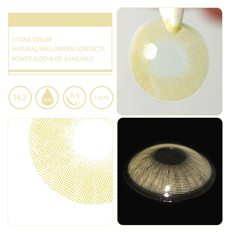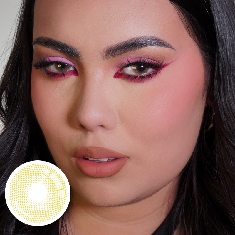 Polar Light Yellow Green transforms each of your gaze. Simple but not boring, palm area colored contact lenses have the purest sand color and deliver the most natural looking yellow eyes you've ever seen. The pattern of the natural iris rimless, your eyes will look completely natural.