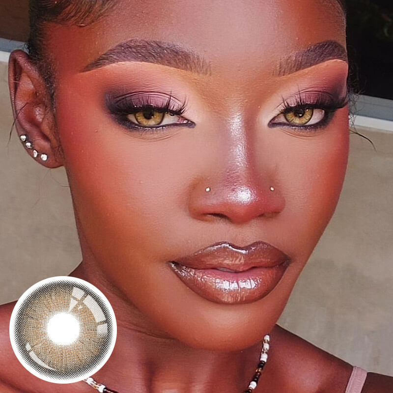 Evoking the warm radiance of sun-kissed mocha, Sandy Twilight showcases a seamless two-tone gradient blending rich brown hues with golden undertones. Mirroring the intricate beauty of natural eyes, this lens offers a captivating transformation. Its subtle play of light and shadow creates a harmonious enhancement, ensur