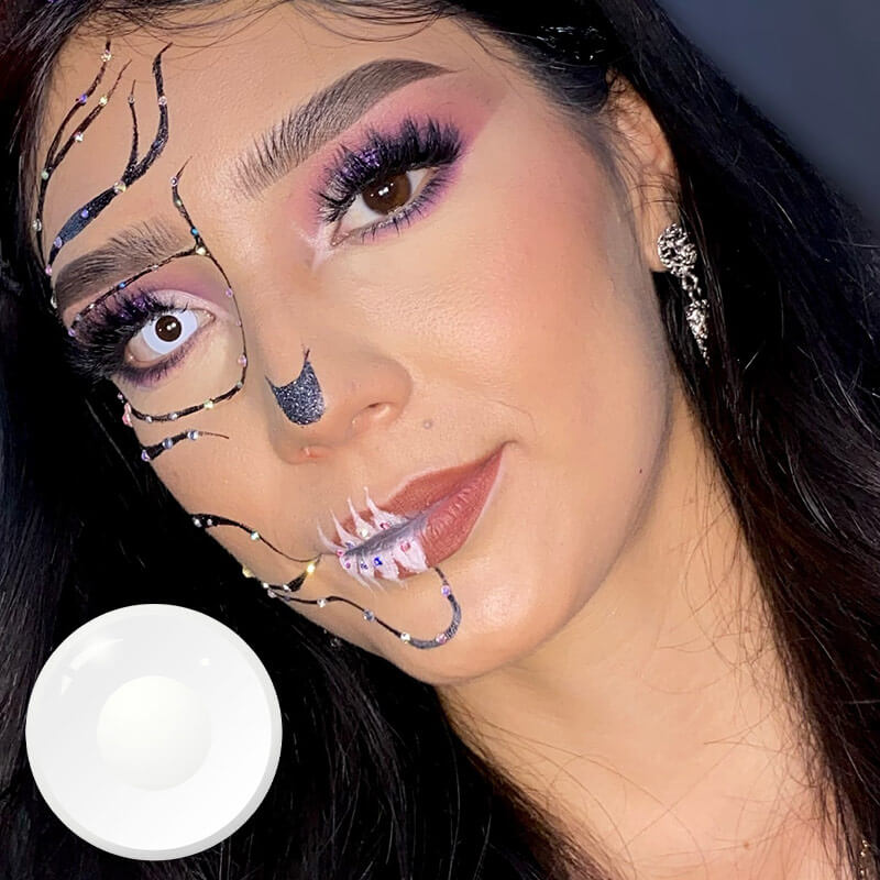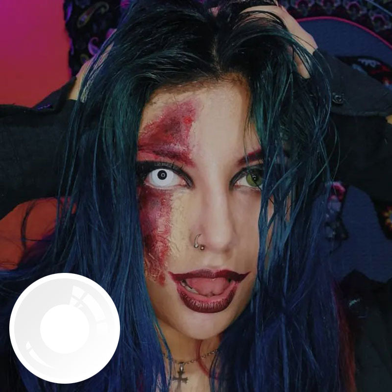 Get the Unibling White Block contacts for a unique and mesmerizing look. These yearly wear lenses cover both your iris and pupil, creating an intriguing effect.